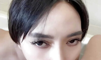 Sexy Asian babe loves to blowjob meaty cocks and lick balls