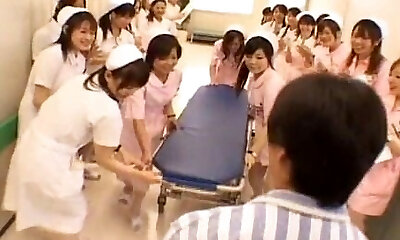 Subtitled CFNM Japanese nurses hj blowjob measure