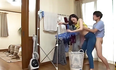 Beautiful Nao Jinguji eagerly gets behind her hubby to get some dick