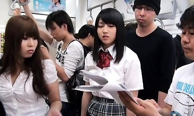 Insatiable Japanese Cheerleaders Get in a Bus to Plumb the Commuters